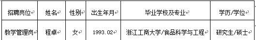 根据2017年3月30日《3044永利集团2017年上半年人事派遣制工作人员招聘启事》,经报名、资格审查、面试、体检和考核,现确定程卓同志为公司教学管理岗位(编外用工)拟聘用人员,并公示如下: