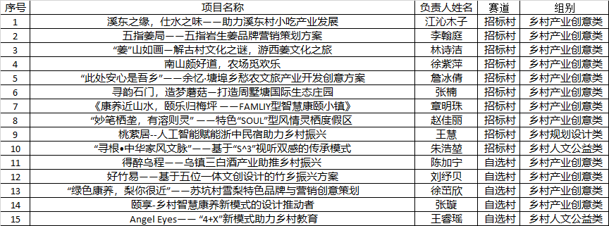 根据本年度公司乡村振兴创意大赛选拔赛相关规定,经项目立项、外送盲审等流程,在178项优秀项目中选拔出主赛道招标村10项、自选村5项推荐入围省赛复赛,具体名单如下: