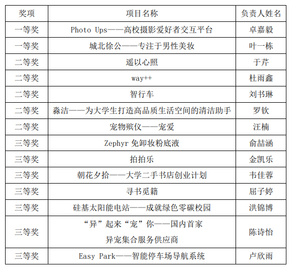经过三个小时的激烈角逐,最终谢凤华老师指导的卓嘉毅团队“Photo Ups—高校摄影爱好者交互平台”和丁雯老师指导的叶一栋团队“城北徐公——专注于男性美妆”项目获得本次比赛的一等奖,其余12个项目分获二、三等奖。