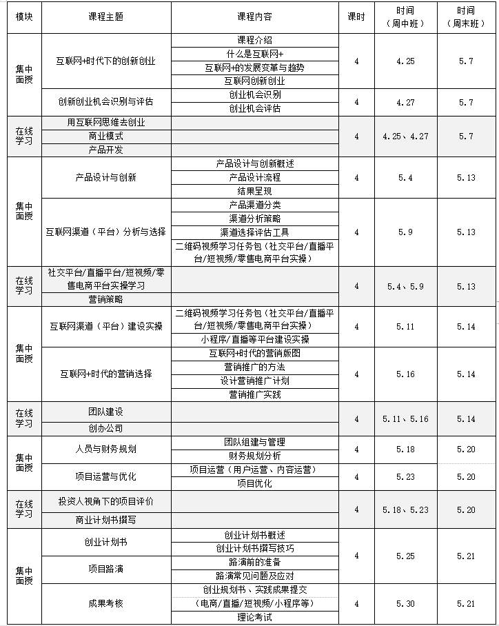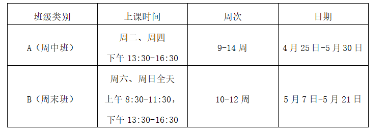 注意事项: 集中面授模块为线下课,在线学习请当晚自行安排时间。 开班后请假不得超过两次(一次课即半天,4个课时),分班名单确定后不得换班!