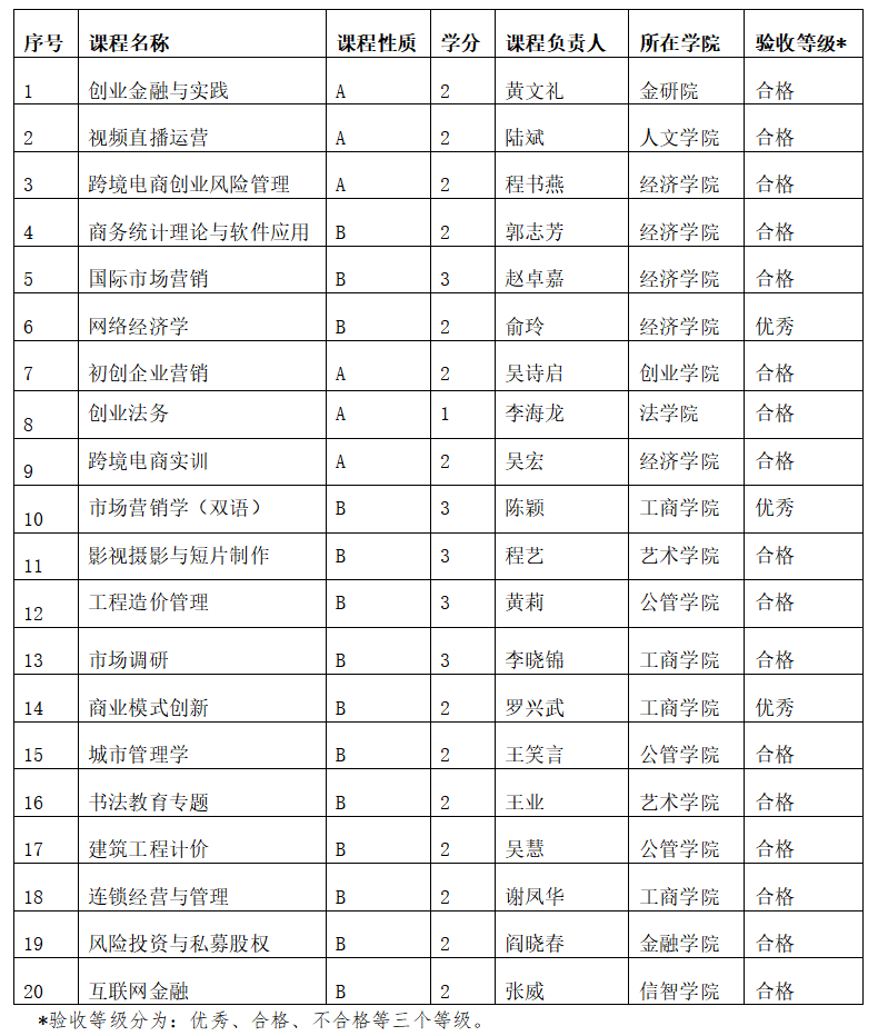 经专创融合课程负责人申请、公司审核、专家组评审,20个校级专创融合课程建设项目建设达到验收要求,现将评审结果公布: