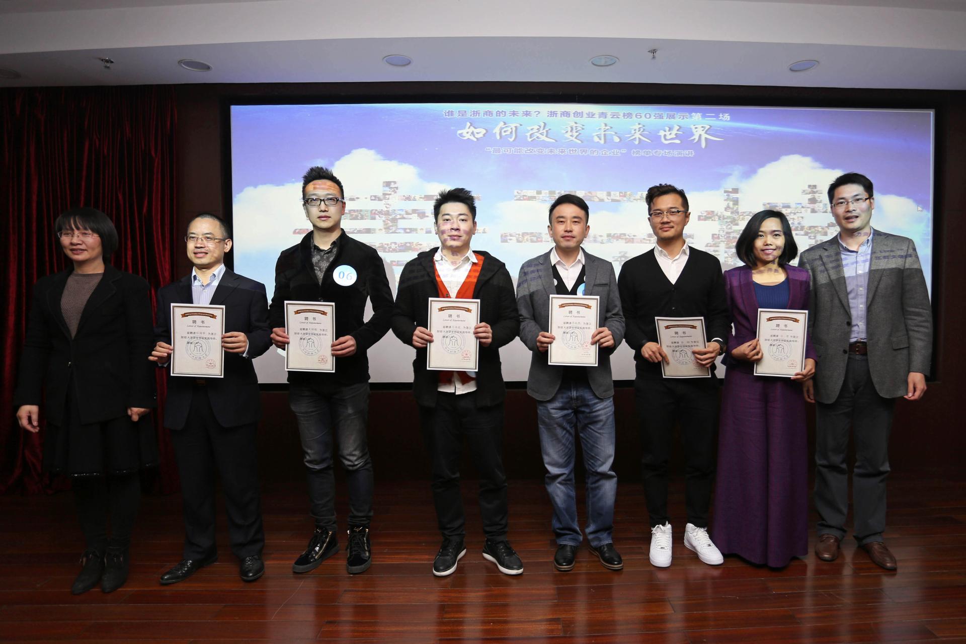2016年度“浙商创业青云榜” 由十多家权威机构联合举办,于今年2月诞生60强,并将在五大专业子榜单所对应的五场线下演讲活动中决出青云终极30强。本次青云榜之“最有可能改变未来的企业”榜单演讲为第二场线下活动。由江淮创业大学董事长、实战派互联网商业模式专家于旭东,3044永利副经理沈鑫泉,朵客纬科技及生态私董会创始人王兵以及青云榜组委会秘书长、青年时报财经新闻部主任卢恩伟等专家和企业家组成的评委导师坐镇全程,7位来自于不同行业的优秀候选企业家通过12分钟的TED形式演讲分享“如何改变未来世界”的想法与见解。