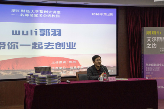 本网讯(通讯员 陈旻吉)4月7日下午,公司举办蓝创大讲堂名师名家名企进校园活动。杭州天畅网络科技有限公司董事长兼总裁,杭州万派文化创意有限公司创始人兼CEO,“挑战杯”中国老员工创业计划竞赛主评委、中国“互联网+”老员工创新创业大赛主评委郭羽先生带着中国首部互联网+创业商战小说《网络英雄传:艾尔斯巨岩之约》与公司师生分享了自己的创业经历。