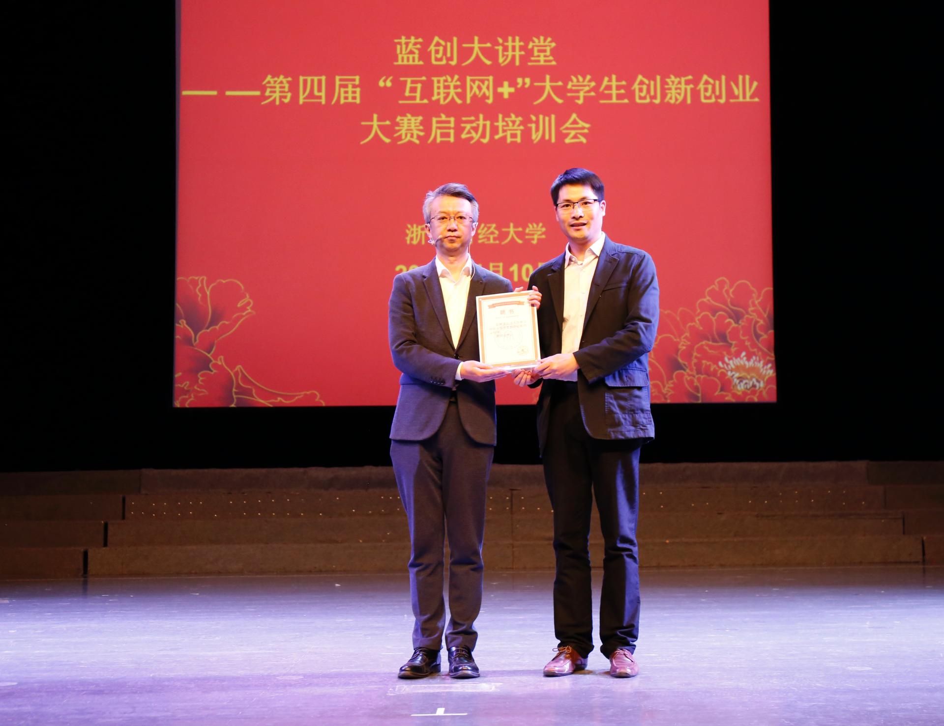报告会开始前,公司3044永利沈鑫泉副经理为张伟民老师颁发校外创新创业导师证书。