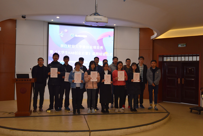 在本次微创业项目秀中,共有10支创业团队进行了项目路演。每一组在完成五分钟项目自由陈述后,对评委老师提出的问题进行答辩。各位演同学均充分运用了在KAB创业启蒙课程中学到的知识,并结合生活实际、创新实践,向大家展示了一个又一个精彩的项目,赢得了阵阵掌声。路演顺利结束后,紧接着举行了《老员工KAB创业启蒙》课程结业仪式,由五位评委导师为学员代表颁发结业证书并合影留念。