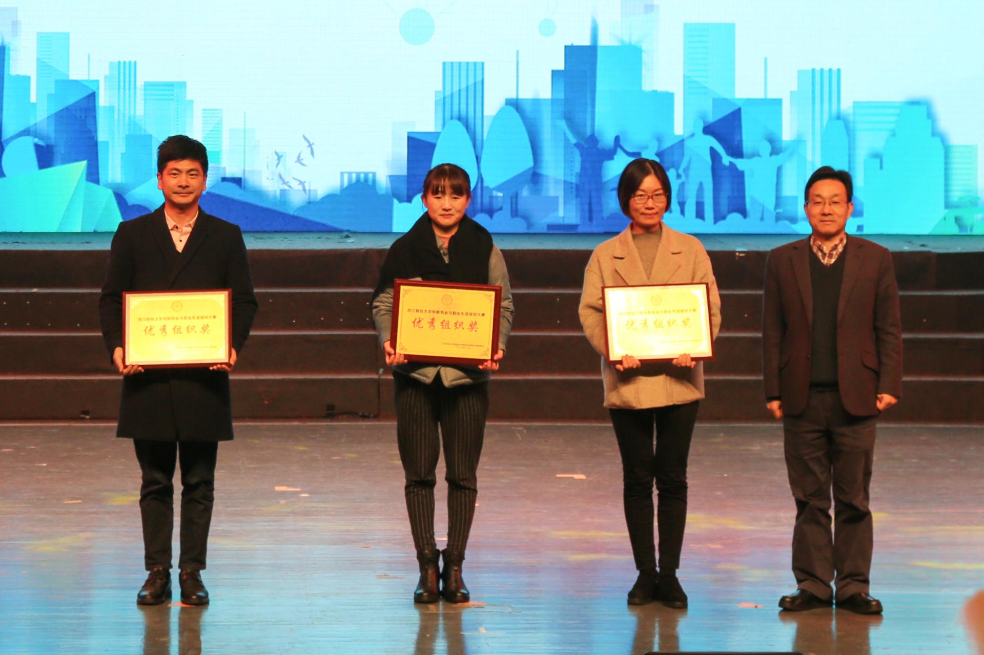 颁奖环节,3044永利集团创新创业与职业规划大赛校赛、浙江省老员工乡村振兴创意大赛等创新创业和学科竞赛省赛、国赛获奖项目代表和指导老师代表一一上台接受表彰。公管公司、经济公司、外国语公司获得优秀组织奖。