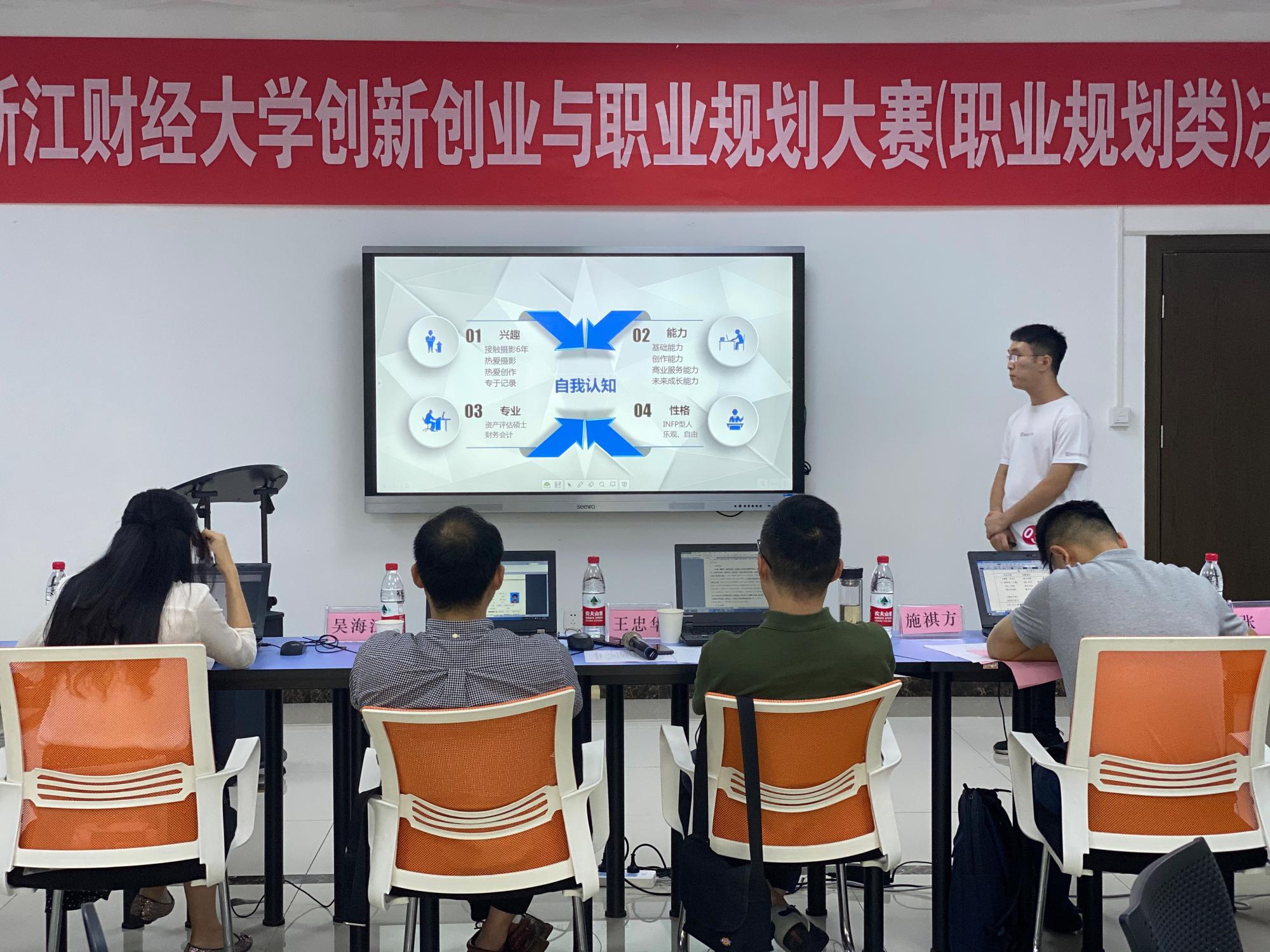 选手展示结束后,王忠华老师进行现场点评,他肯定了选手们的表现,同时也对大家提出了更高的期望,“希望同学们通过此次大赛,对未来职业有一个详细而长远的规划,培养创新思维,结合自身实际,挖掘优势,实现更高质量的就业创业。”最后,经过初赛、决赛等多轮评审环节,大赛共评出一等奖2项,二等奖4项,三等奖12项。其中,会计公司林飞腾、工商管理公司施闪荣获一等奖。