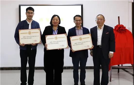 钟晓敏和楼胆群分别为员工乡村振兴俱乐部理事会成员颁发聘书并与俱乐部轮值主席蔡卫东共同揭牌。