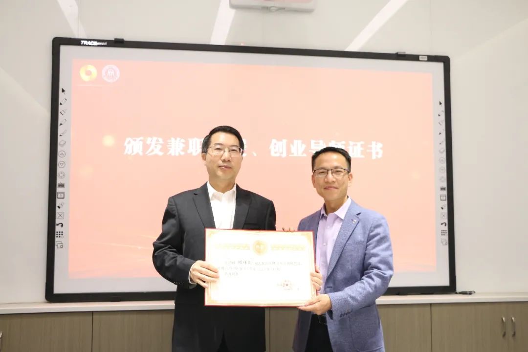 随后,童夏雨与刘祥剑分别代表双方签订合作框架协议,并举行了聘任仪式,聘请刘祥剑为公司兼职教授,万明勇、李炳为公司创新创业实践导师。