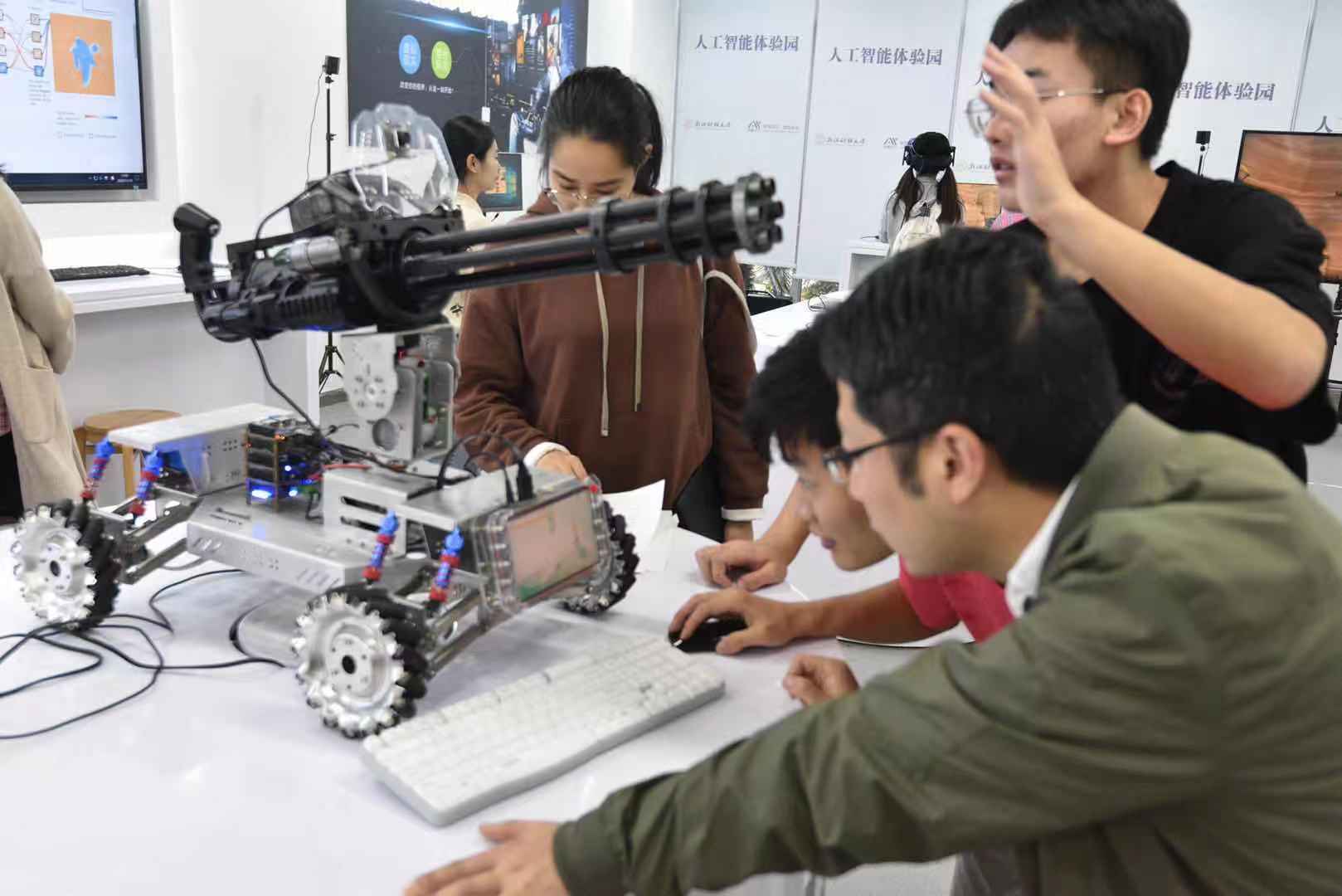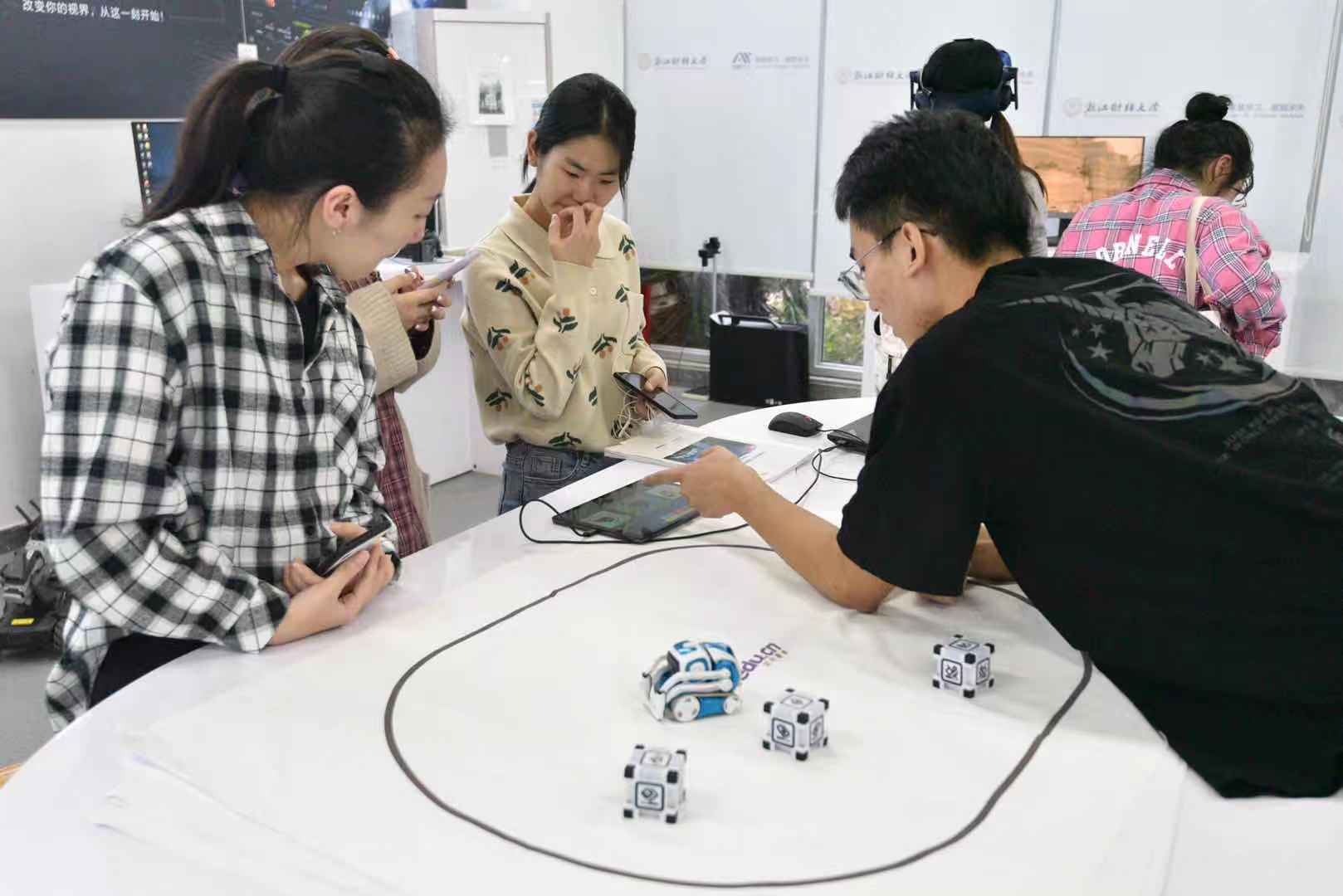 首先,参与体验活动员工在文化中心一楼学习公司双创教育工作介绍、双创政策宣传以及公司创新创业竞赛优秀作品展览,为参与展览的优秀团队投票。接着,参观公司绘梦蓝创空间、虚拟仿真创新创业实验室、师生共创双创工作室,了解公司创业园入驻流程,与入驻园区团队交流学习。最后,走入人工智能体验园,体验一系列人工智能技术以及人工智能传感小车、传感机器人以及AI围棋机器人。