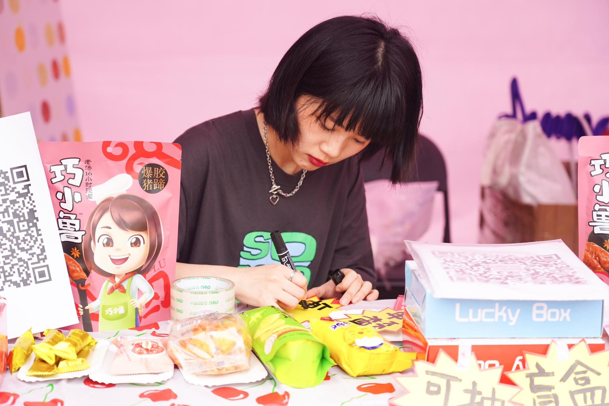 以售卖好吃实惠的小零食为主题,元気ガールズの水星环游小铺依据老员工的口味和需求,精心挑选了包括薯片、卤味、素食等在内的20多种零食商品,并通过游戏和比赛的方式,准备了盲盒、红包等小礼品作为活动福利,吸引了众多来往的同学围观购买,单日销售收入破千。