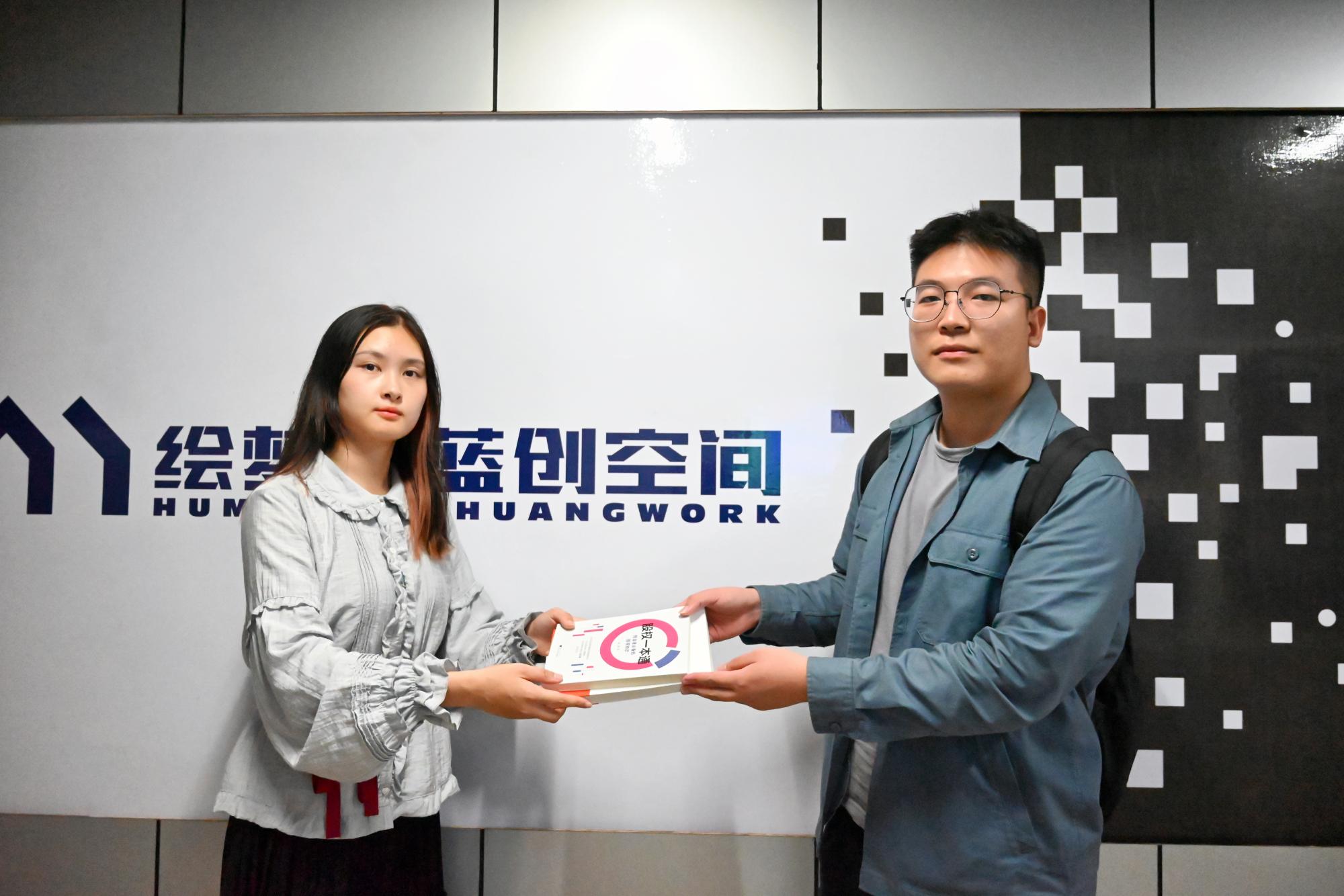 随后,孵化部部长陆卓悦代表绘梦蓝创空间向每个团队赠送《让创业不再孤单》、《股权一本通》等创业书籍,并与各项目负责人签订了入驻承诺书和孵化协议。