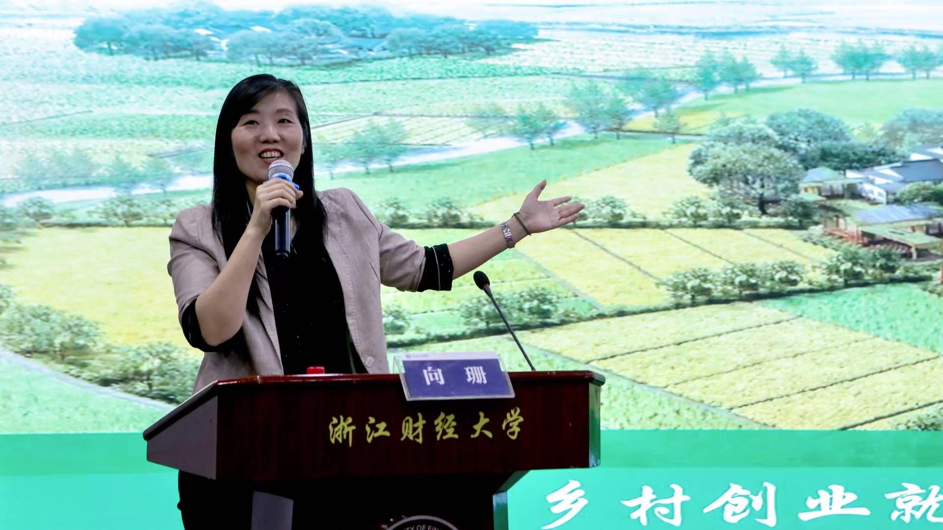 向珊女士首先从浙江省未来乡村示范区余杭青山村、崇福农创园嘉兴桐乡等几个乡村振兴的项目实例,向同学们具体展示了什么是乡村创业。随后,向珊老师从社会发展趋势方面分析了助力乡村创业、实现乡村振兴的重要性,其中提到了大城市病日益严重、城市资源承载不堪负荷等城市经济分析和中国社会城镇化趋势及英国与中国的发展问题对比。在此背景下,近年来各行业头部企业逐渐进入乡村,向珊老师从蓝城农业的服务项目出发具体介绍振兴乡村、服务三农的产业和方式,由此引出老员工进入乡村创业就业的机会点,包括现代农业、农旅融合、品牌溢价等形式。向珊老师指出,乡村创业就业需要与职业兴趣和其特定的人才特点需求相结合,通过选择行业、公司与人职匹配的三个实现路径在乡村创业就业方面输入更多的对口老员工人才。