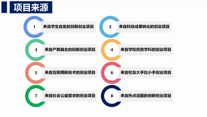之后老师总结了八个创新创业项目来源,让同学们更加了解项目来源,打开了创新创业项目选择新思路。老师还为同学们讲解了高教职教赛道评审规则以及评审要点。分别从创新性,商业性团队和社会效益出发,帮助同学们更好了解大赛得分点。