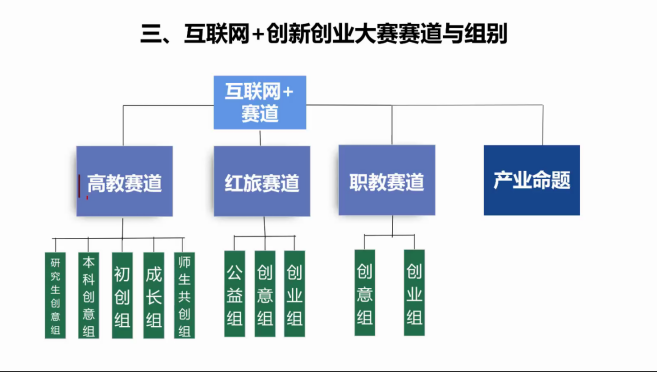 其次介绍了互联网+创新创业大赛赛道与组别,老师重点讲解了高教赛道以及红旅赛道组别和组别要求,从项目说明、参赛条件和组别要求入手,之后又详细讲解了项目选择方向以及大背景下的典型聚焦;其中提到了依托大背景,针对小领域,找到真问题的项目选择方向。并且举例说明了互联网+项目具体选择方向。帮助同学们更好地了解赛道和分清组别,为同学们以后的互联网+比赛打下了良好的基础。