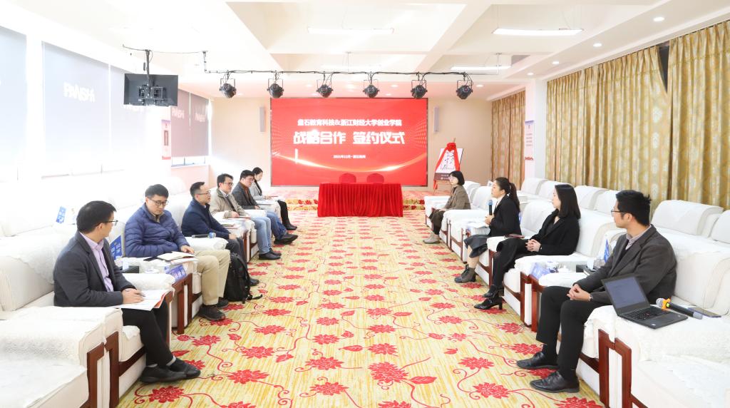 童夏雨介绍了公司双创教育基本情况,他指出此次公司与盘石教育科技合作,是实现产教融合的重要一步,能够让员工更加深入了解数字经济,把员工培养成优秀的数字经济领域人才。代晴晴介绍了磐石集团发展情况,她表示盘石集团将围绕数字经济职业人才的培养与公司展开合作,依托高校优质团队力量和生源,为数字经济产业发展输送人才。