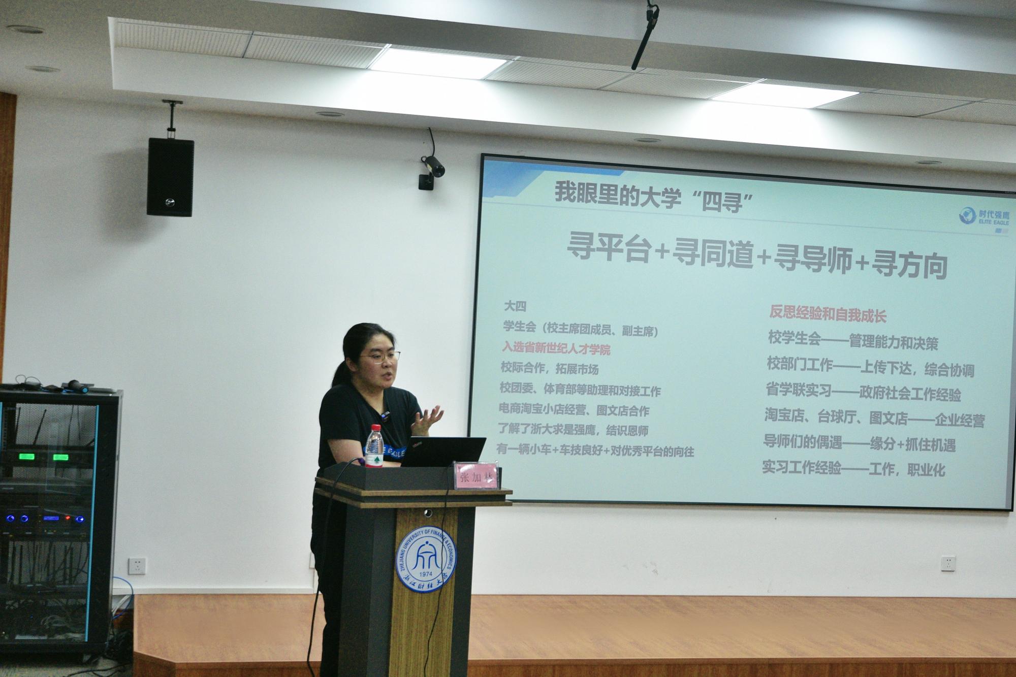 首先,张加林对时代强鹰·杭州创业发展促进会进行了详细介绍。时代强鹰以打造“人才生态雨林”为目标,通过导师带徒的人才培养模式,为亲年老员工提供了一个思政育人的社会化平台,致力于让同学们在成为优秀青年人才的路上更进一步。