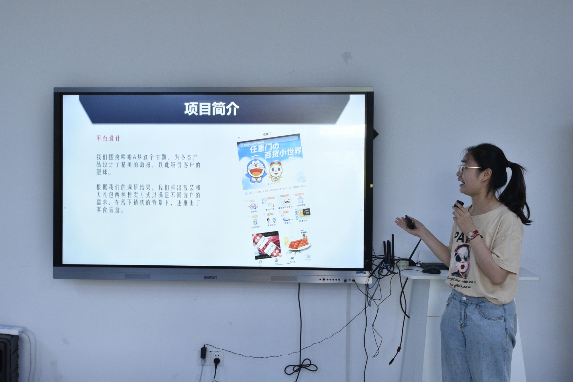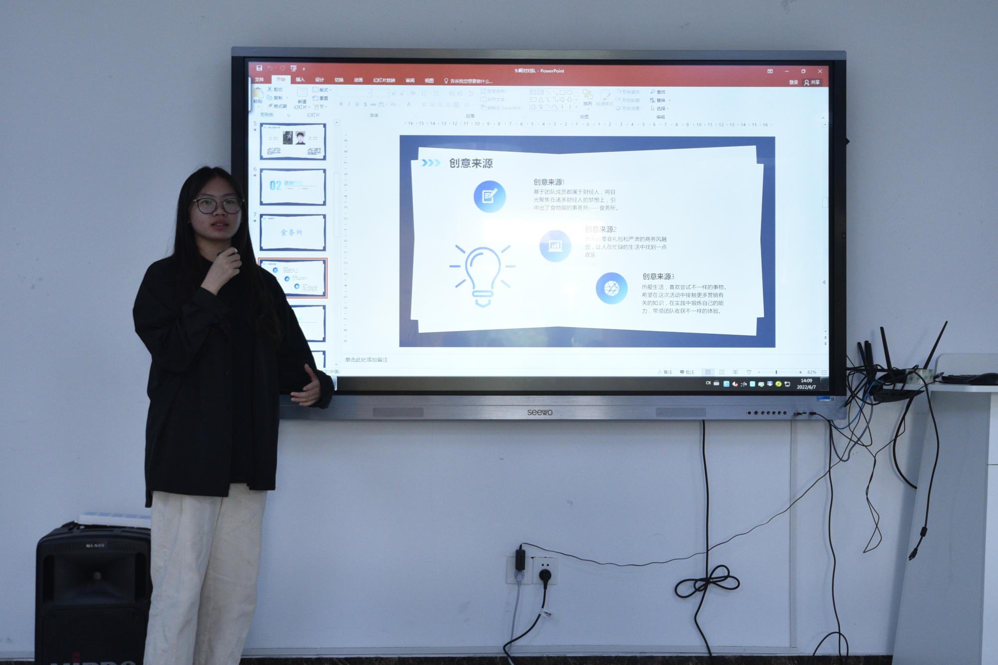 在本次活动中,28个队伍以PPT的总结方式依次从项目简介、创业团队、竞争策略、商业模式、运营状况等多个角度介绍了项目具体信息,每个队伍都充分展现出了团队凝聚力和创新性,“零食盲盒”、抽奖拼单、打造公众号、线下自助站点搭建等新颖趣味的营销策略都得到了充分体现,带给了我们耳目一新的体验。