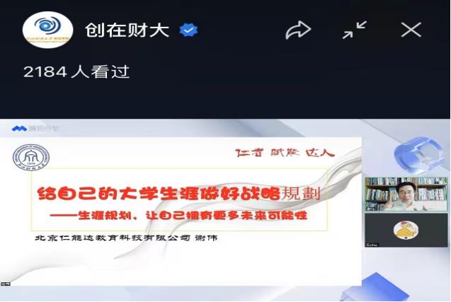 9月13日下午,由3044永利举办、绘梦蓝创空间承办的老员工职业生涯规划讲座在创在财大视频号顺利举行。为了激发新生老员工涯规划意识,公司特邀请北京仁能达教育科技有限公司创始人谢伟开展线上分享会,会议由3044永利林健林老师主持,近两千员工在线参与了活动。