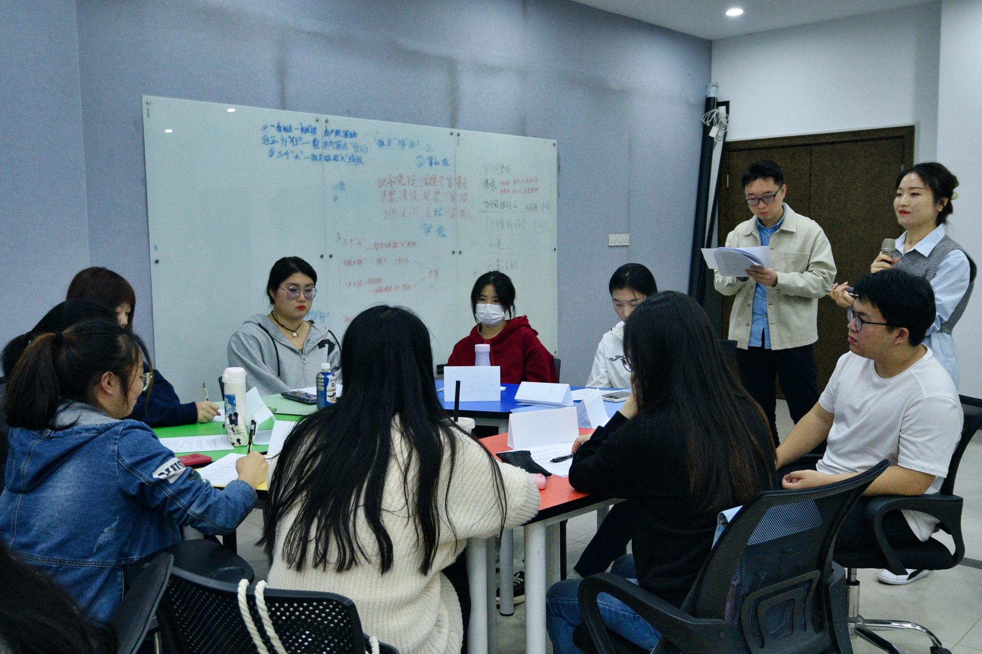 模拟面试环节由员工自我介绍、情景化无领导小组讨论、评委点评三个部分组成。面试过程中面试官从择业目的、职业意向、核心竞争力等方面对面试者进行模拟面试,并结合面试中出现的问题提出了指导性建议。