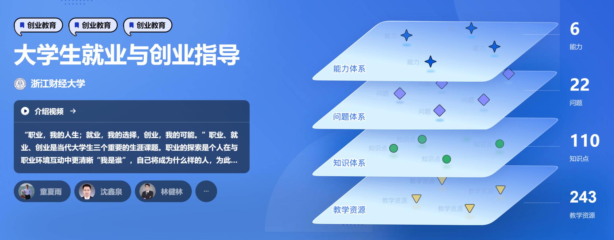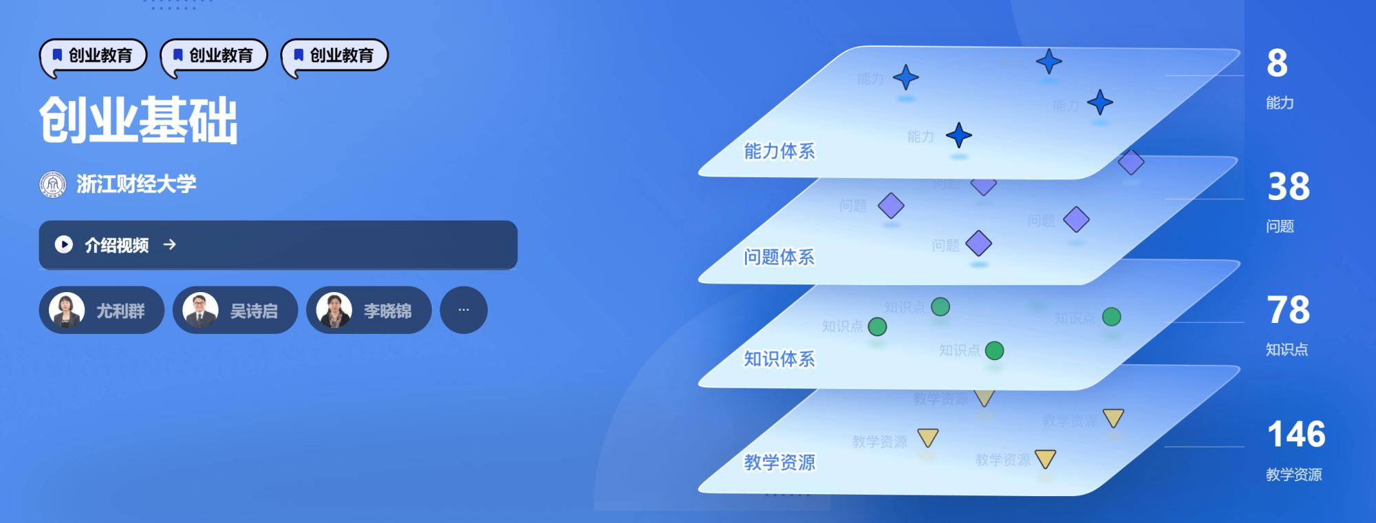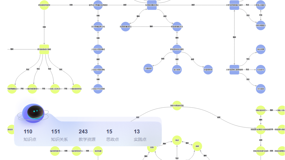 目前上线的标准课程版本中,《老员工就业与创业指导》共建立起6个能力层次、研究出22个问题体系,建构110个知识点和151个知识关系,《创业基础》共梳理出8项能力层次、78个知识点,构建起77个知识关系,链接146项教学资源。