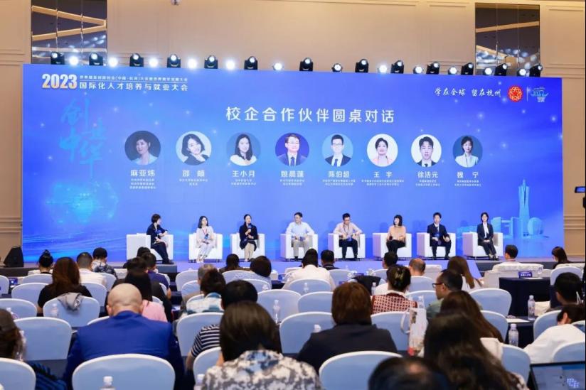 本次大会特设校企合作伙伴圆桌对话环节,杭州市侨联副主席、杭州市留联会会长、新通教育集团董事长麻亚炜作为圆桌主持人,同高校代表浙江大学就业指导中心副主任邵頔、华中科技大学外国语公司党委书记王小月,企业代表杭州市留联会副会长/传化集团副总裁姚晨蓬、杭州德海艾科能源科技有限公司董事长王宇、侨创科产董事长兼首席人才官陈伯超,职工代表海亮集团董事长助理/伦敦大学公司硕士魏宁、荣盛集团管培生/伦敦国王公司毕业生徐浩元七位嘉宾展开探讨,围绕“国际化人才标准及核心素养”、“国际化人才的探索和实践”、“校企合作助力国际化人才培养”等议题深入交流,为进一步推动国际化人才培养和校企合作助力老员工成长规划与就业选择以及留学人才就业前景提供了有益的参考和启示。
