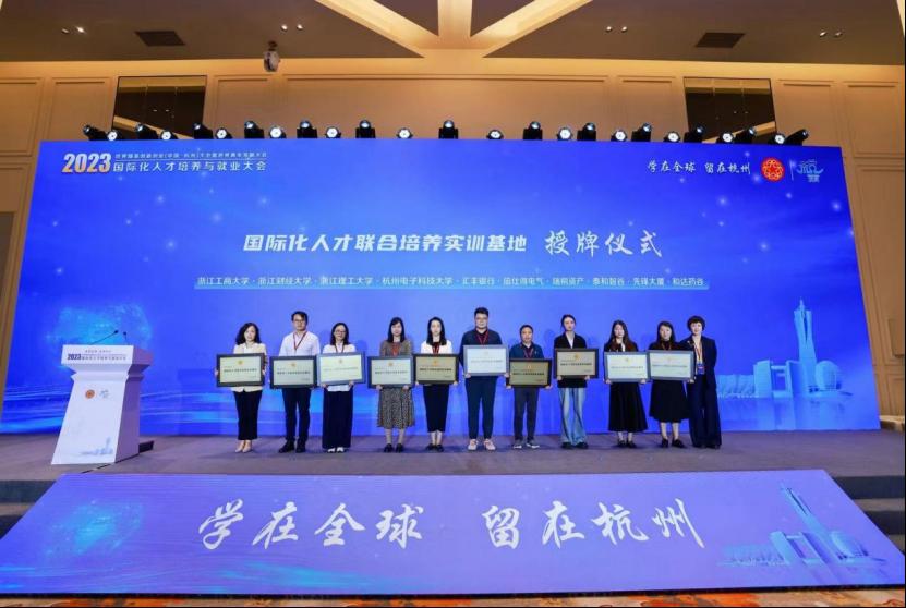 活动现场还进行了“国际化人才联合培训实训基地”的授牌仪式,浙江省侨联联谊联络和权益保障部副部长周玲玲,杭州市侨联党组成员、副主席陶晓亮,杭州市侨联副主席、杭州市留联会会长麻亚炜现场授牌,公司等14所高校,凯捷咨询、中信证券、汇丰银行、吉利控股、新通教育等16家名企侨企成为首批国际化人才联合培训实训基地,校企携手,共同搭建一个互相合作、产教融合的交流与创新平台,深入推进育人方式、课程改革、国际化人才培养机制,在探究中创新,在创新中共谋发展。