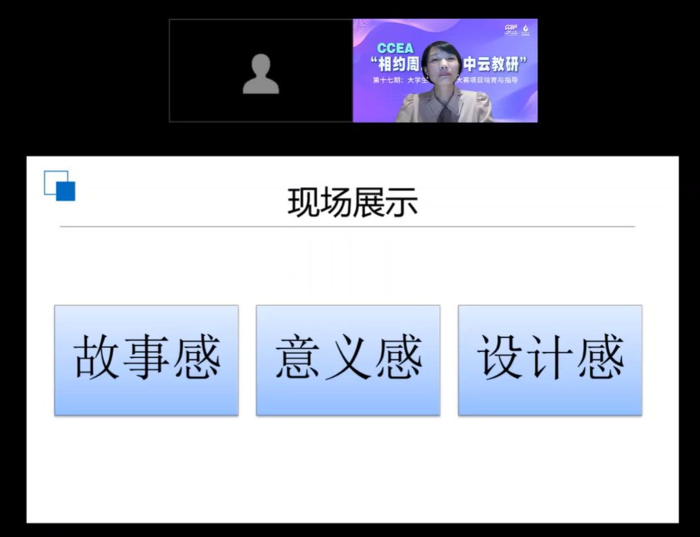 最后,阮娟围绕作品材料与参赛准备分享了指导技巧。她建议作品材料在构成上需要打破时间线,明确重点,全线贯彻专门模块评分标准。现场展示要营造故事感、设计感、价值感,注重导入环节,强调目标职业的社会价值。