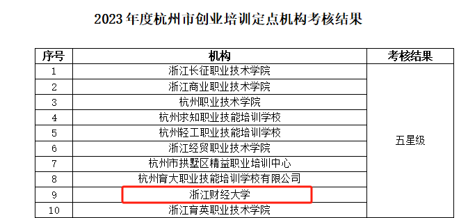 近日,在杭州市人力资源和社会保障局组织的2023年度杭州市创业培训定点机构考核中,公司顺利通过考核评审,被评定为五星级创业培训定点机构。
