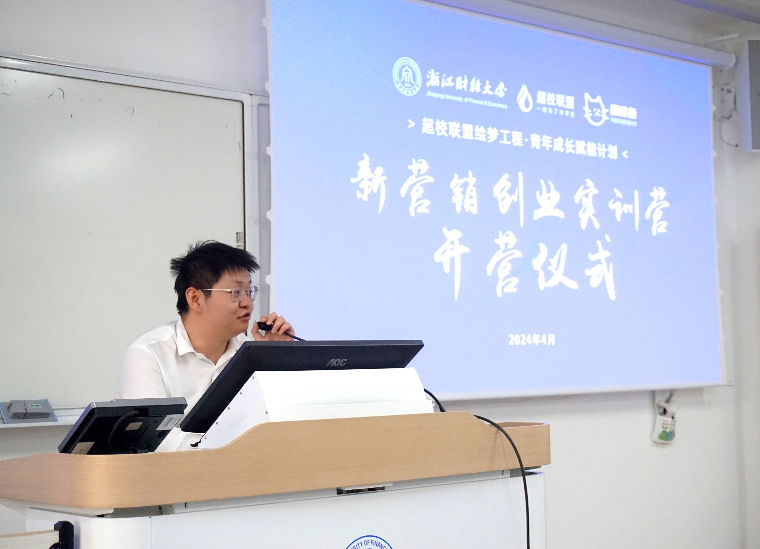 黄勇代表超校联盟致辞,并为本次训练营实训导师颁发聘书。他指出,此次新营销创业训练营是面向青年提升的普适性工程,希望同学们能在“零成本、零风险、全实践”的真实商业创业实训实战中,提升创新精神、创业意识和创新创业能力。