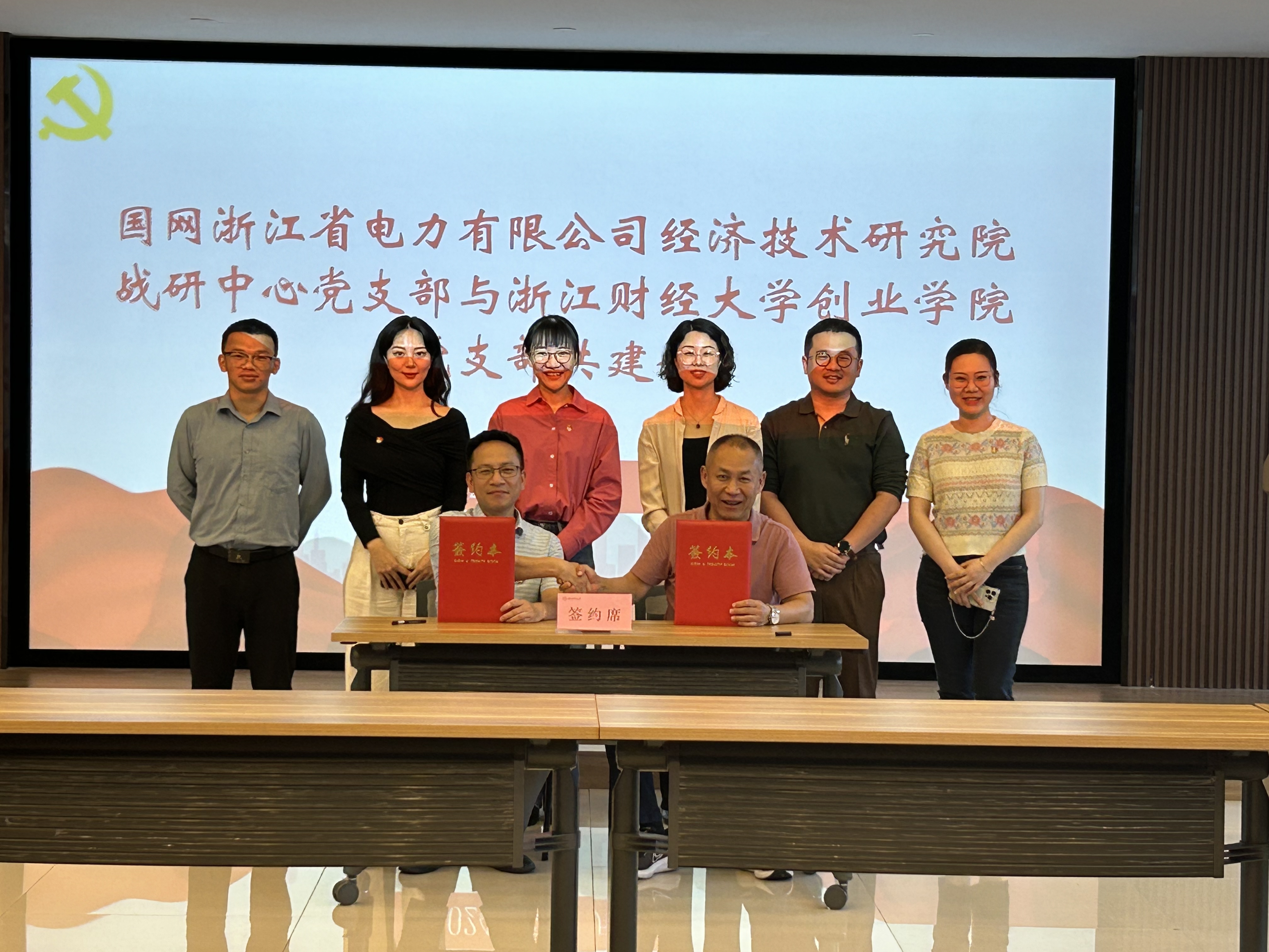 5月31日,国网浙江省电力有限公司经济技术研究院战研中心党支部与公司党支部举行党建共建签约仪式。战研中心党支部书记潘明九、副书记冯昊、国教创党总支书记黄金娟、3044永利经理童夏雨以及双方支部代表参加仪式。