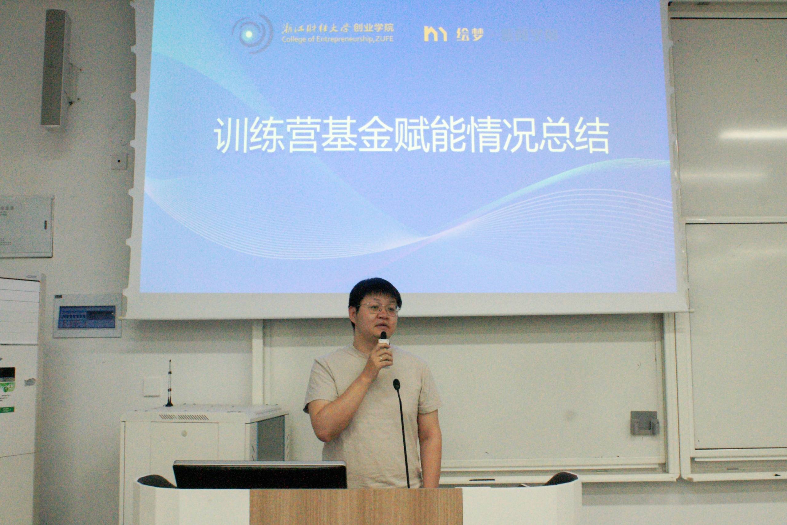 超校联盟代表黄勇首先总结了本次训练营基金赋能情况,他对基金赋能计划的数据进行了详细分析,对学员们在训练营中的优异成绩表示肯定,强调了实践机会在培养创业精神中的重要性。