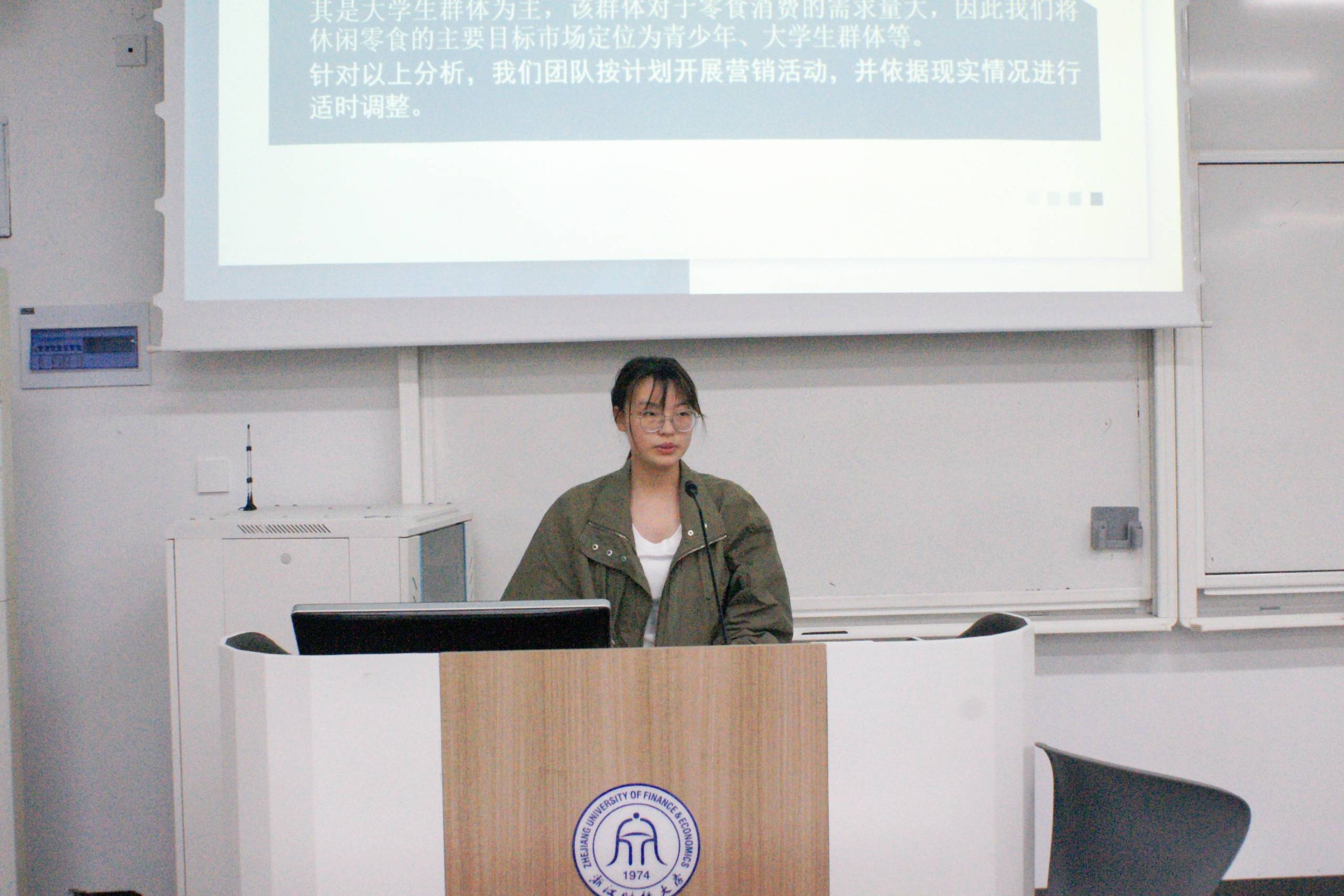 随后,23财会池鼎仪同学作为本次训练营的优秀团队负责人,分享了团队如何突破局限,拓展客群,以及如何依靠共同协作取得优秀成绩。她的分享不仅向大家展示了个人在训练营中的成长经历,也体现了团队合作在创业过程中的不可或缺性。