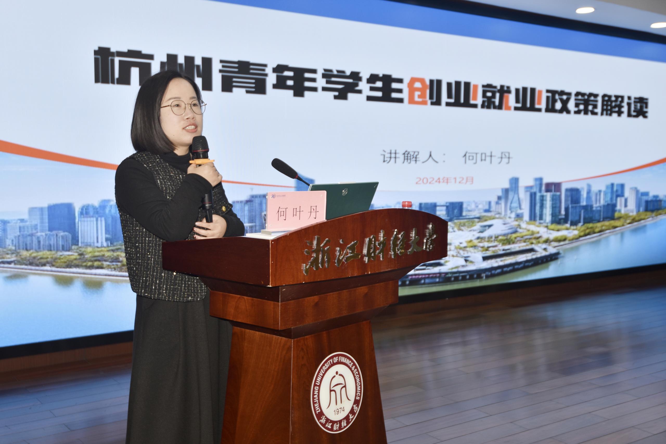 讲座特邀杭州富阳矮子鲜桃专业合作社理事长何叶丹主讲,她首先从三个关键政策文件入手,详细介绍了杭州市政府提供的青年创业就业支持,其中“春雨计划”全面覆盖了就业创业、日常生活、安居乐业等多个维度,为青年员工提供了实质性的政策优惠。
